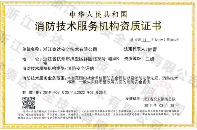 社會單位消防安全評估;消防法律法規(guī)、消防技術(shù)標(biāo)準(zhǔn)、一般火災(zāi)隱患整改等方面的消防安全咨詢。